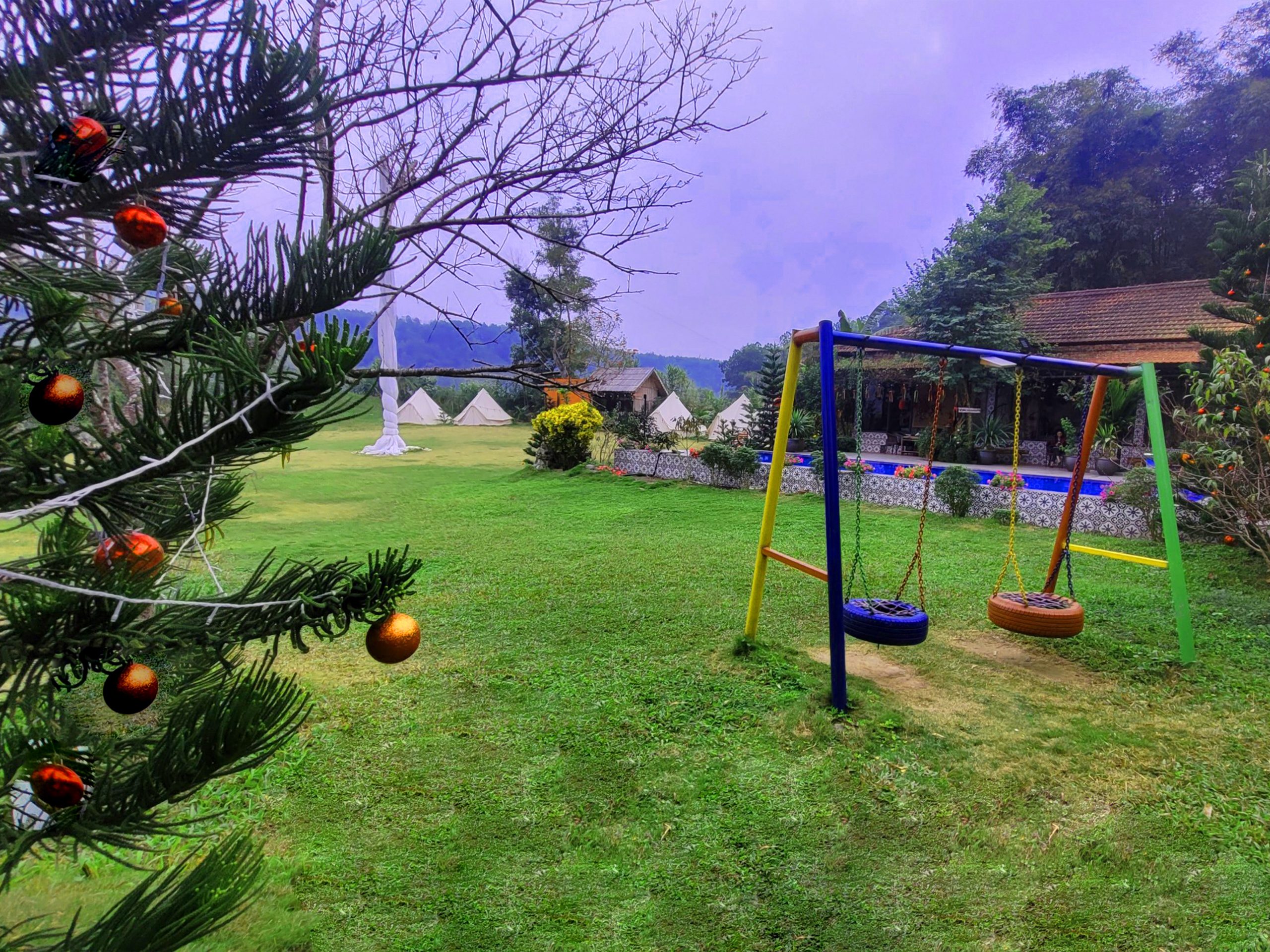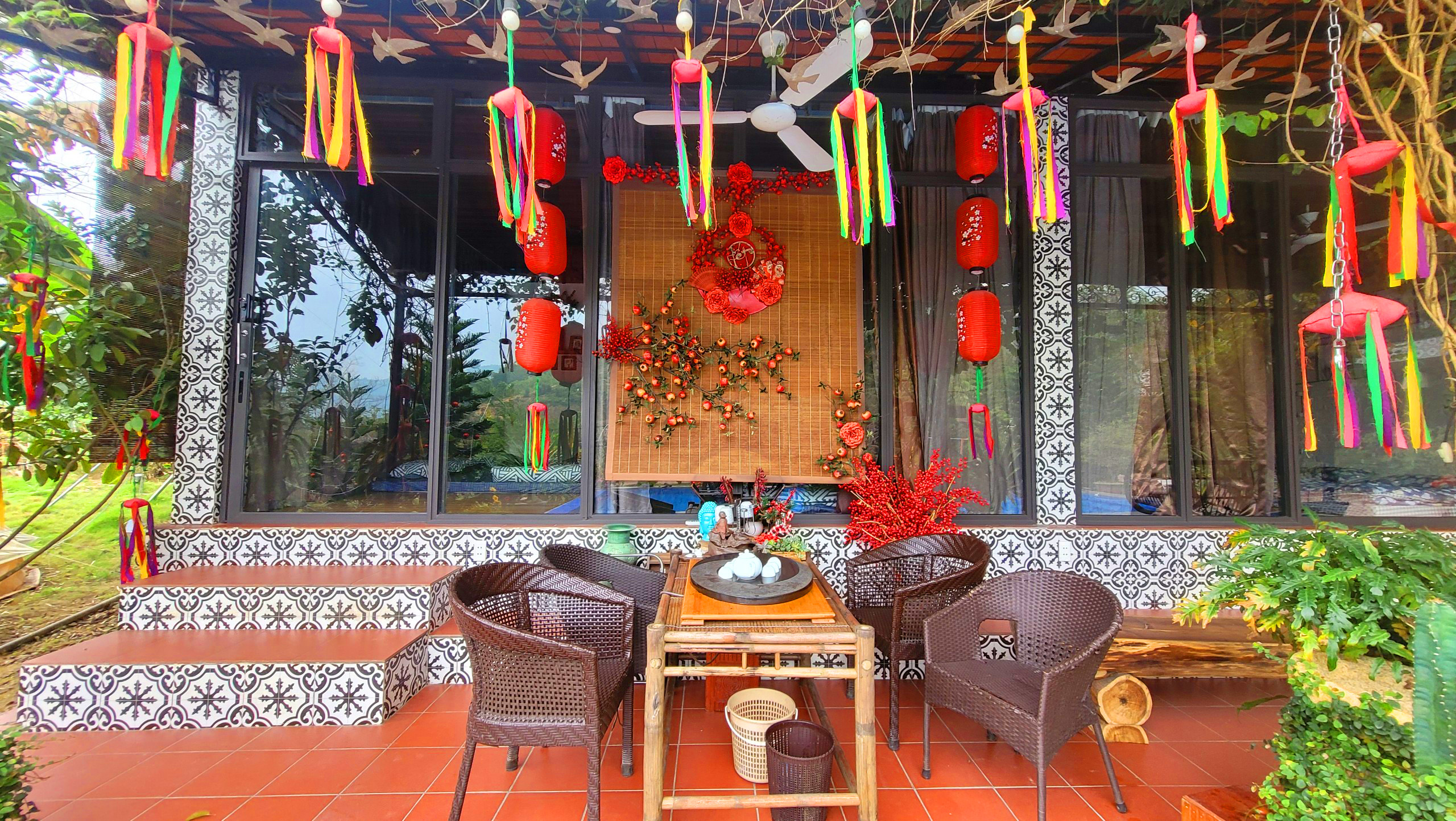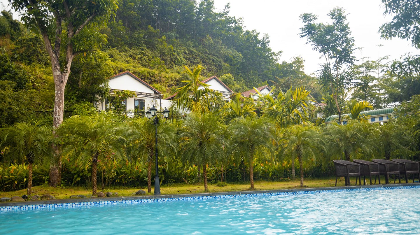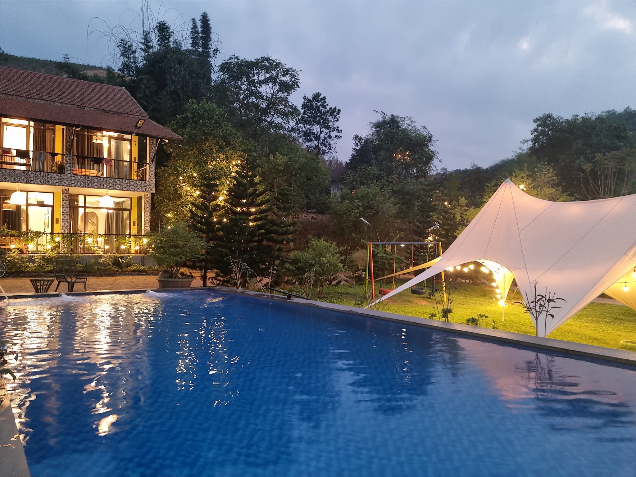 Bản Mường Xanh đang sở hữu khu resort với không gian xanh trồng nhiều loại cây, hoa kết hợp với hồ cá và bể bơi tạo nên sự hài hoà giữa đất, nước, cây cối.