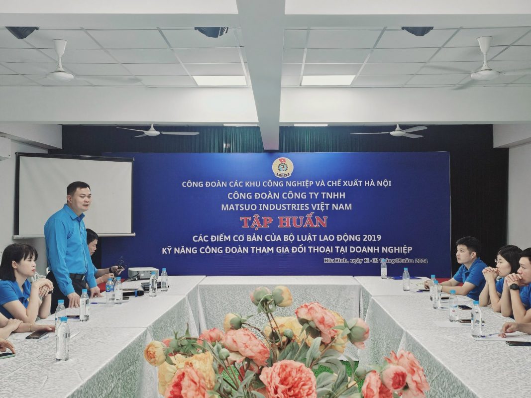 Ngày 11,12/5/2024, Công đoàn công ty TNHH Matsuo Industries Việt Nam tổ chức đào tạo, bồi dưỡng cán bộ công đoàn năm 2024, dự và chỉ đạo có đồng chí Nguyễn Đình Thắng, Chủ tịch Công đoàn Khu công nghiệp, Chế xuất Hà Nội, về phía Công ty, đồng chí Nguyễn Hoàng Long, Chủ tịch Công đoàn và các cán bộ công đoàn công ty.